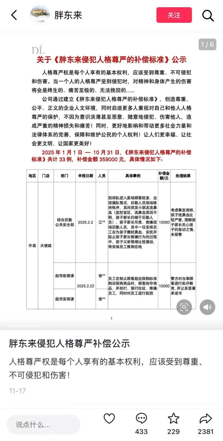胖东来的“委屈奖”让打工人狠狠共鸣。(图/截图)